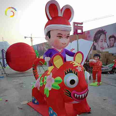 Estatua de dibujos animados decoración de iluminación estatuas artificiales impermeables al aire libre para festivo chino nuevo
