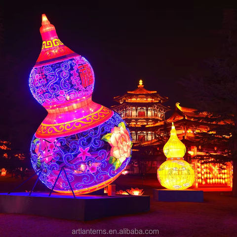 Linterna en forma de calabaza de estilo chino de diseño único y luz en forma de jarrón para exhibición de linterna de jardín